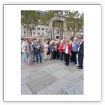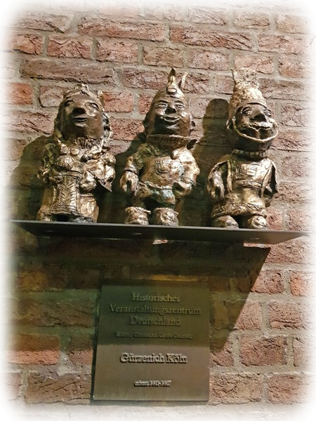 Bei der anschließenden Nachtwächterführung erläuterte Herr MacNeille die Aufgaben der Nachtwächter. Im Mittelalter ging er bei Dunkelheit mit seiner Laterne von Haus zu Haus und prüfte, ob die Haustüren abgeschlossen waren, die Bewohner die Kerzen gelöscht hatten und schliefen. Zu jeder vollen Stunde rief er: Liebe Leute lasst Euch sagen.. Sie sorgten auch dafür, dasssich kein „Gesindel“ herumtrieb. Vom Dom führte uns der Weg durch kaum beleuchtete Straßen. An besonders dunklen Ecken erzählte er uns manch gruselige Geschichte. Auf dem Weg kamen wir an Tünnes und Schäl und den `Heinzelmännchen´ von Köln vorbei. Der Rundgang endete am „Alter Markt“.