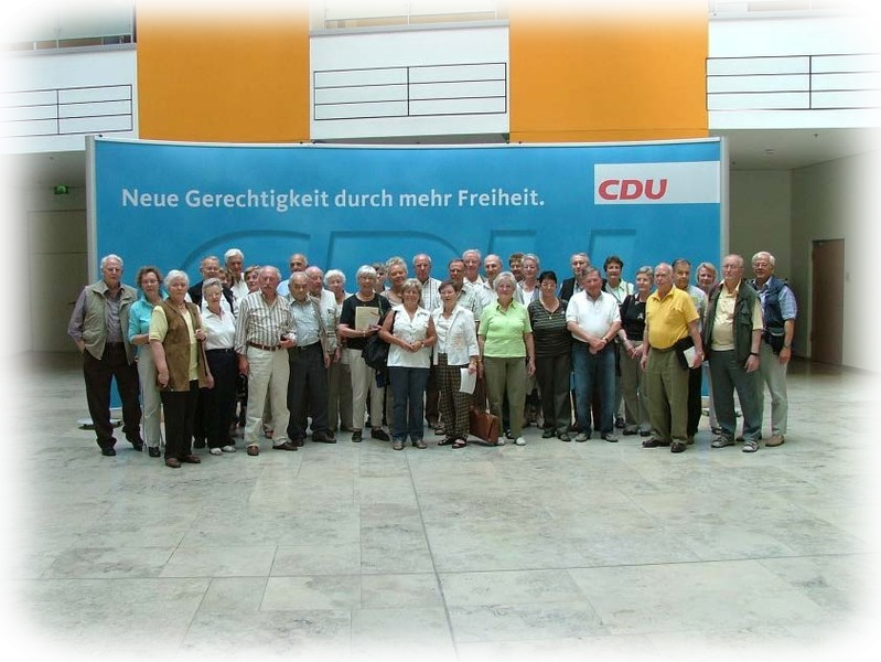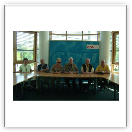 Im Sitzungszimmer, in dem sonst der Bundesvorstand tagt und so erlauchte Persönlichkeiten wie Bundeskanzlerin Dr. Merkel, Fraktionsvorsitzender Kauder und Parteivorsitzender Pofalla Platz nehmen, saßen dieses Mal die Vorsitzenden der Seniorenunion und berieten über die neue Rolle der älteren Generation in der Gesellschaft und die Strategie in den kommenden Jahren.