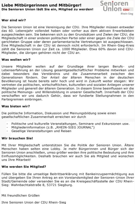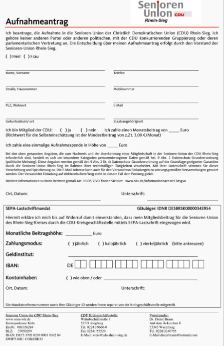 Mitgliedsantrag - Seniorenunion Ndk