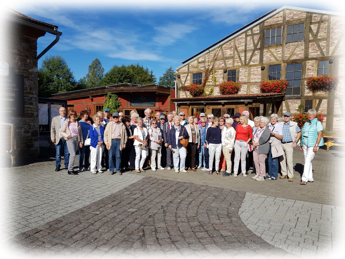 Bei sommerlichen Temperaturen und strahlendem Sonnenschein fuhr die Senioren-Union Niederkassel mit 47 Teilnehmern durch die Vulkaneifel nach Birgel zum Historischen Mühlenzentrum.