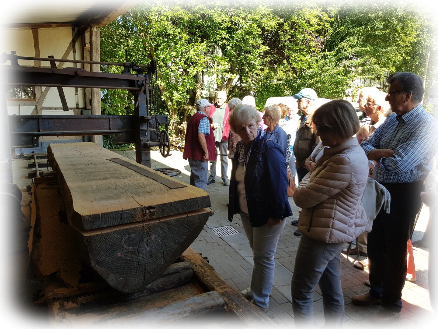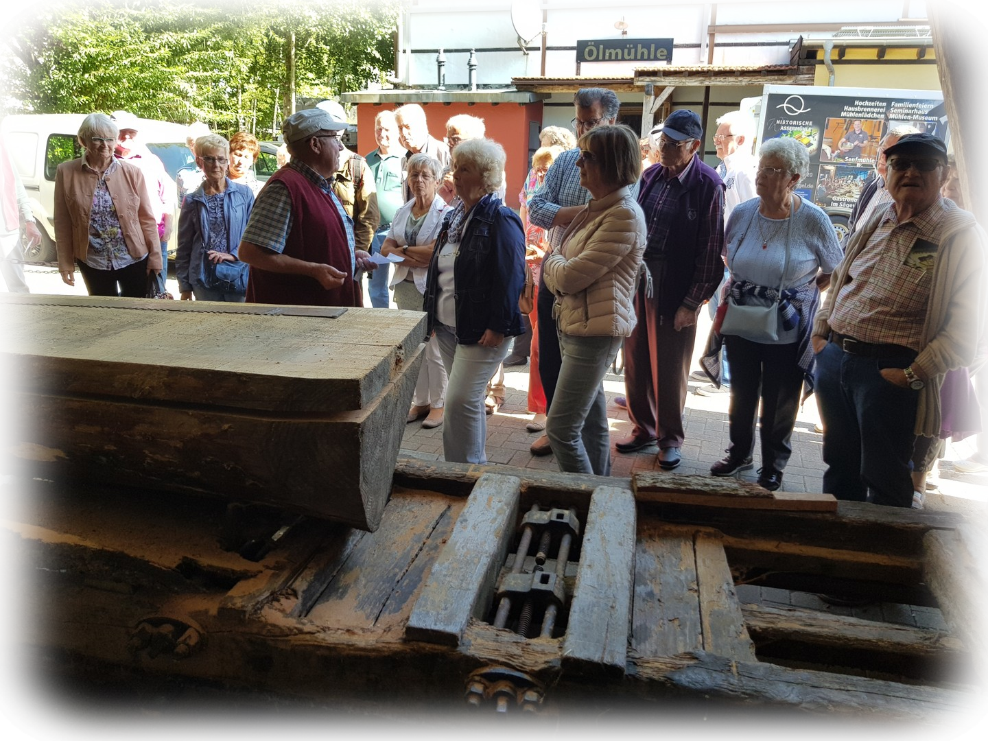 Um 11:00 Uhr wurden die Teilnehmer in zwei Gruppen unter Führung von „Alfred“ und „Karl“ durch das Ensemble verschiedener Mühlen geführt. Man erhielt einen Einblick in die mühevolle Vergangenheit des handwerklichen und wirtschaftlichen Lebens der Menschen in der Eifel.