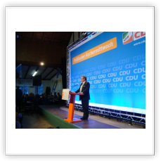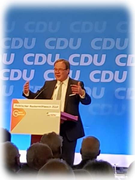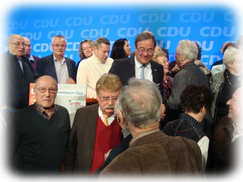 Pünktlich um 17,00 Uhr hielt der Landesvater, Ministerpräsident Armin Laschet, unter den Klängen des Marsches „Preußens Gloria“ Einzug in die voll besetzte Halle. Bei solch einem Anlass war natürlich die Politprominenz des Landes, aber auch mit dem Europaabgeordneten Elmar Brok und der Bundestagsabgeordneten und Vorsitzenden Der CDU Rhein-Sieg, Elisabeth Winkelmeier-Becker, vertreten. Nach Begrüßung durch Kreisvorsitzenden Jochen Richter (MdL) heizte der Generalsekretär der Landes-CDU , Josef Hovenjürgen, die Zuhörer bis hin zum Stimmversagen mit einer engagiert kämpferischen Rede mit Seitenhieben auf das Berliner Theater auf den Auftritt des Ministerpräsidenten ein.