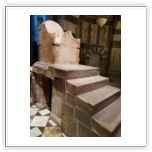 dem sechs Stufen hinaufführen. Ummantelt ist der Thron von Verkleidungsplatten,